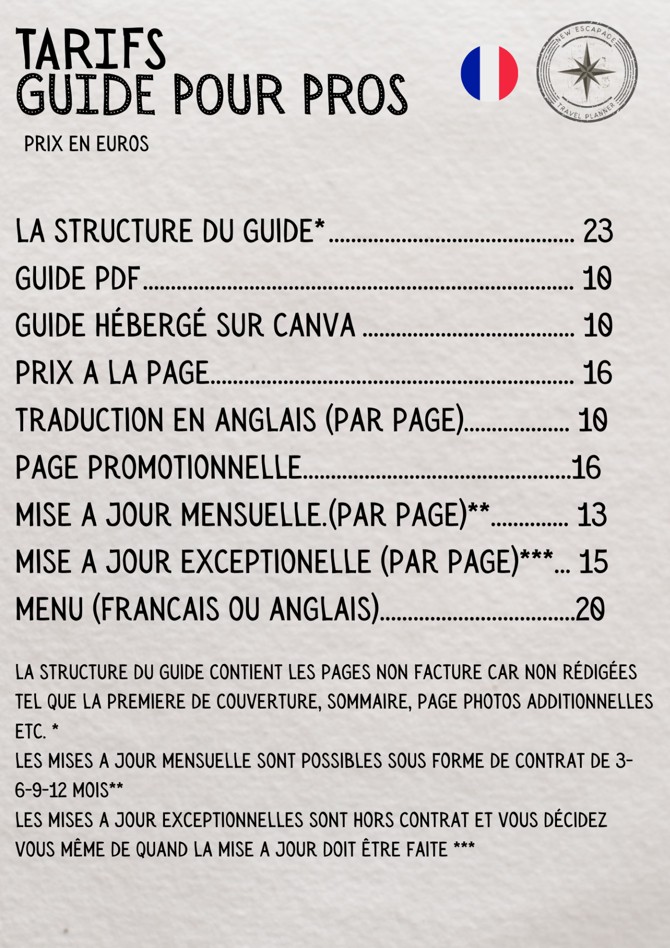 Le menu est personnalisable selon vos goûts et l’esthétique de votre établissement. Des mises à jour sont possibles.