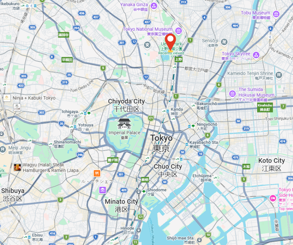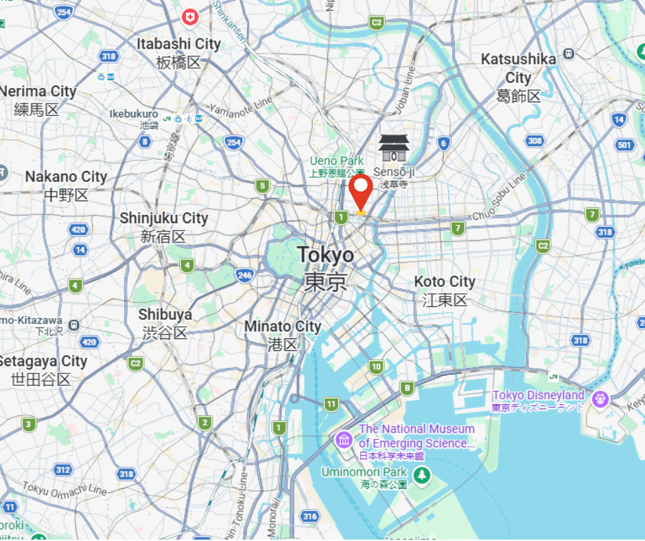 Ueno : 3 min en métro / 15 min à pied