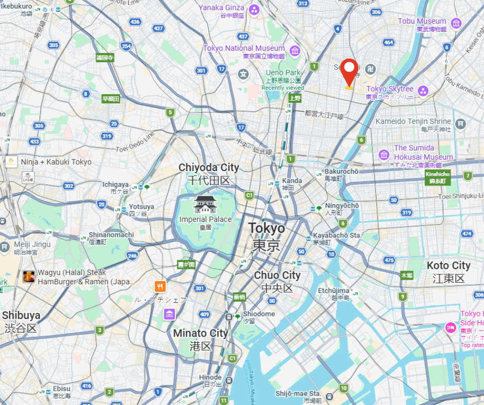 Asakusa : 5 min en métro / 20 min à pied